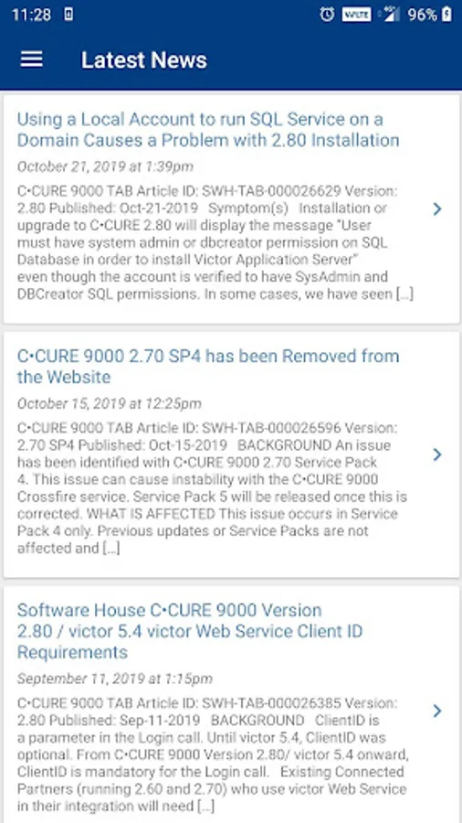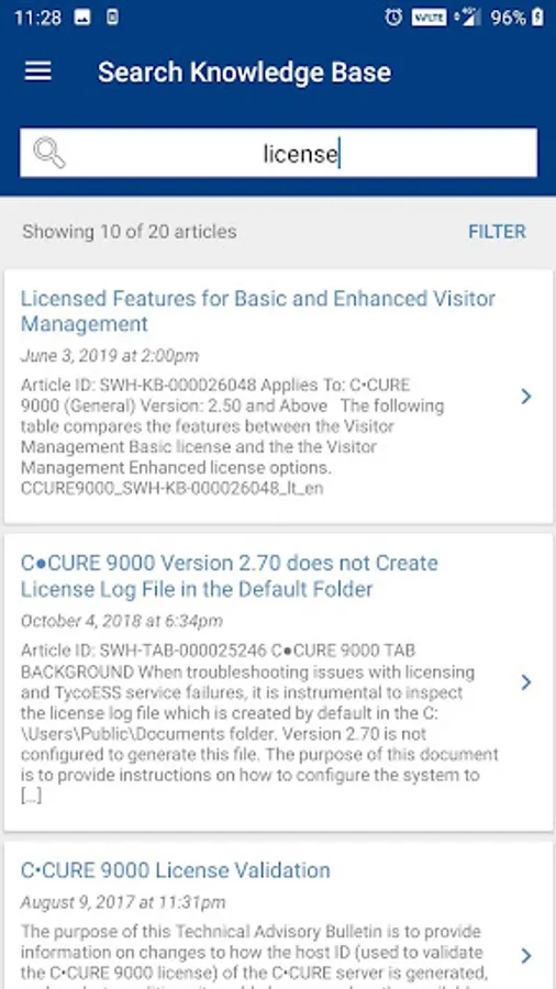 The Software House Knowledge Base and Support Application is an essential tool for any integrator and acts as their first line of defence when troubleshooting CCURE systems. It provides Integrators with a seamless, easy-to-navigate mechanism to perform quick searches of Knowledge articles, Technical References (manuals, data sheets, release notes etc.) and Technical Advisory Bulletins (TABs). The Application also offers users the opportunity to initiate a Live Chat session directly with a Software House support representative should they require further assistance.