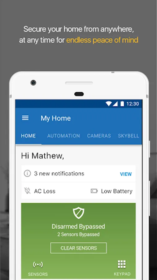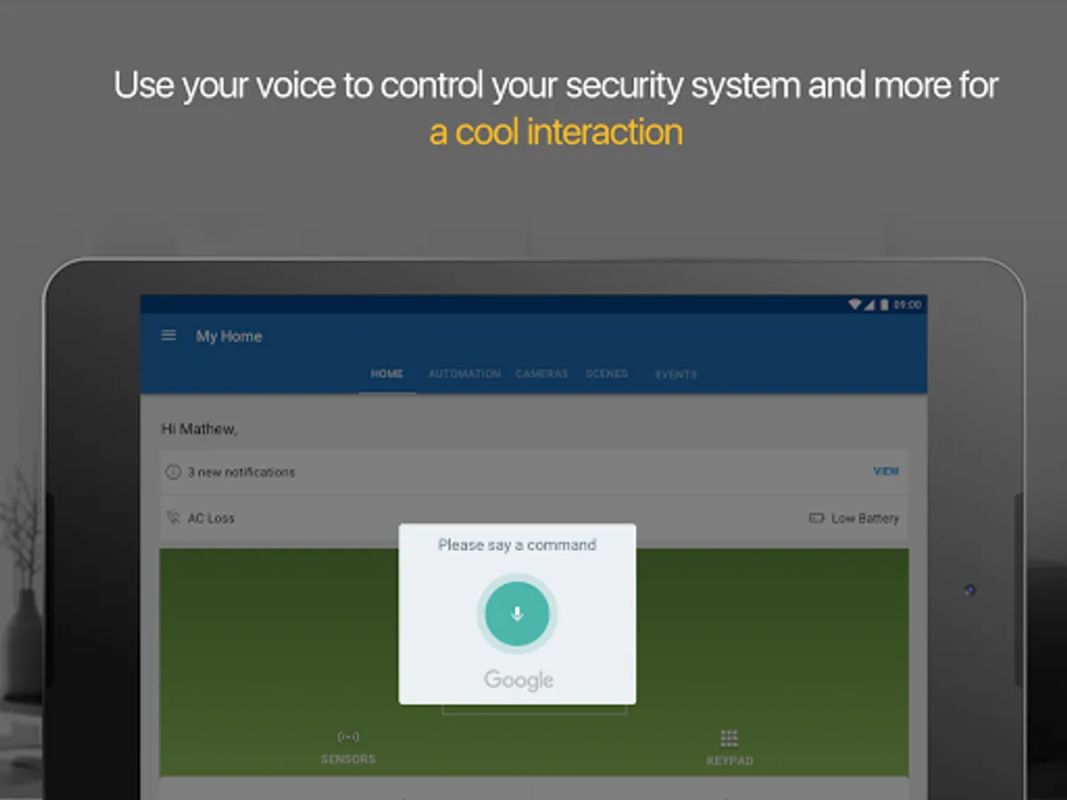 • Receive text and email alerts with associated video clips when sensors are activated or motion is detected