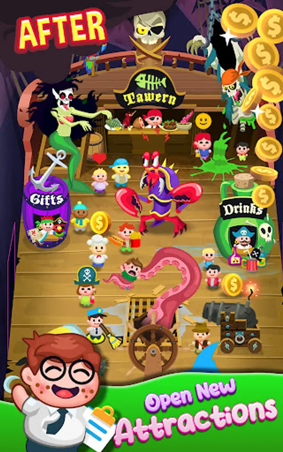 Build your own theme park where all monsters are welcome and the visitors are dying to meet them! Start slow with just a bunch of rides and surprises, keep expanding and become the scariest business mogul!