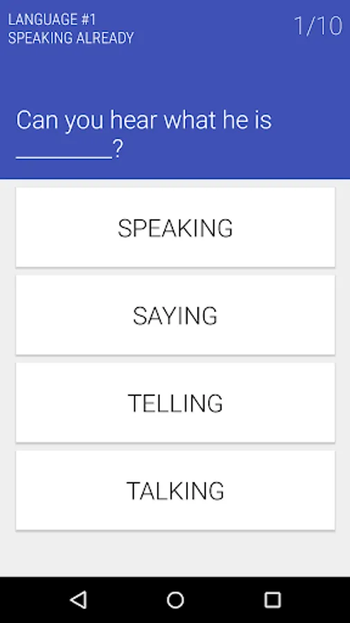 This application helps you to improve your English skills. It contains more than 300 multiple choice tests.