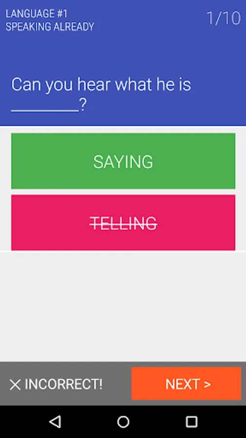 Each test consists from ten questions. Select the correct answer from three or four possible answers. If the type of tests is Errors, you first have to find the error and then select it in the options. Then you are expected to type in a word that would be correct in the sentence.