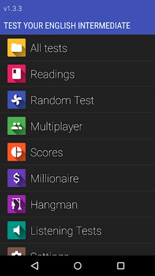 This application helps you to improve your English skills. It contains more than 900 multiple choice tests.