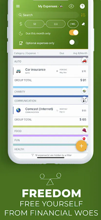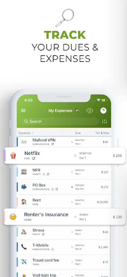 ● You can get a breakdown of your expenses by category, due date, and much more!