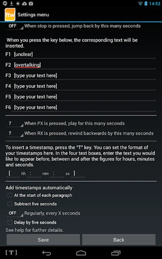 This is the Android version of the FTW Transcriber, the widely-used Windows audio transcription software for manual transcribers.