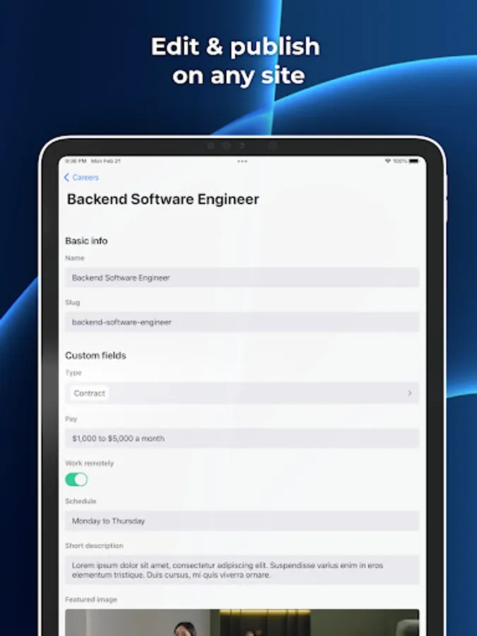 Built on the back of Webflow, WebflowCMS offers an easy way to manage content without access to a desktop.