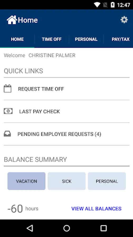 You can view Time Off, Personal Info, Pay/Tax info, and Benefits. You can make Time-Off requests and edit your Personal Info.
