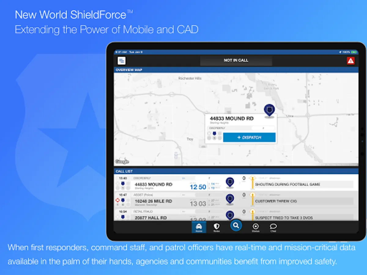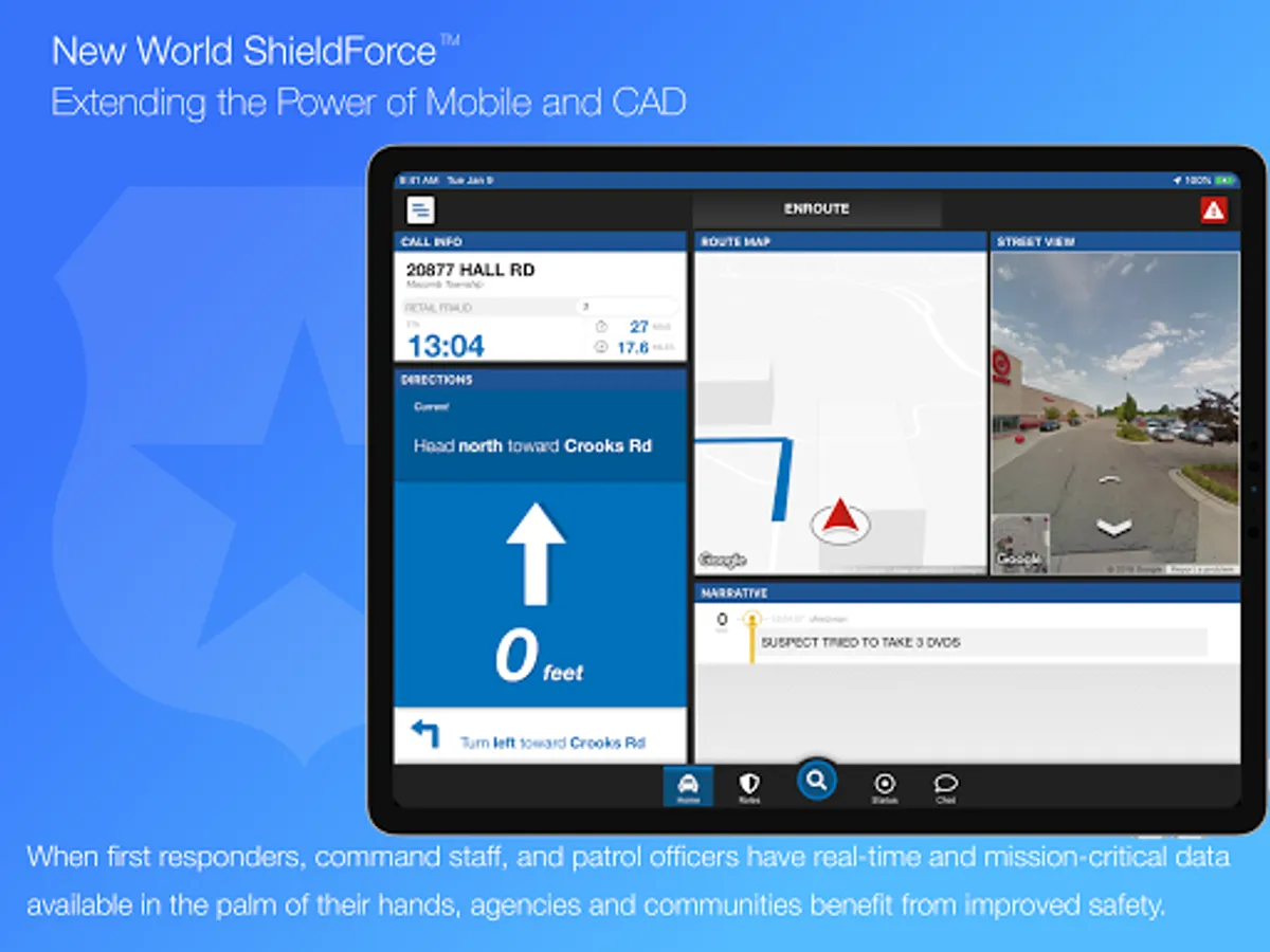 Police crews stay safer and better prepared using New World ShieldForce™ created specifically for licensed users of Tyler Technologies’ New World™ Law Enforcement software solutions.