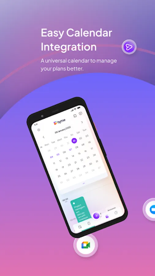 Experience the world's first calendar application that runs on phone numbers. With Tyme, you can easily add participants for events directly from your phone book. No need for email IDs anymore. Stay organized and schedule with ease. Download now and revolutionize the way you plan and connect.