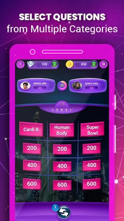 Show-off your knowledge in this online trivia game featuring players from all over the world. Choose your category and answer quiz questions to win games and earn coins that you can use to compete in various cities around the world.