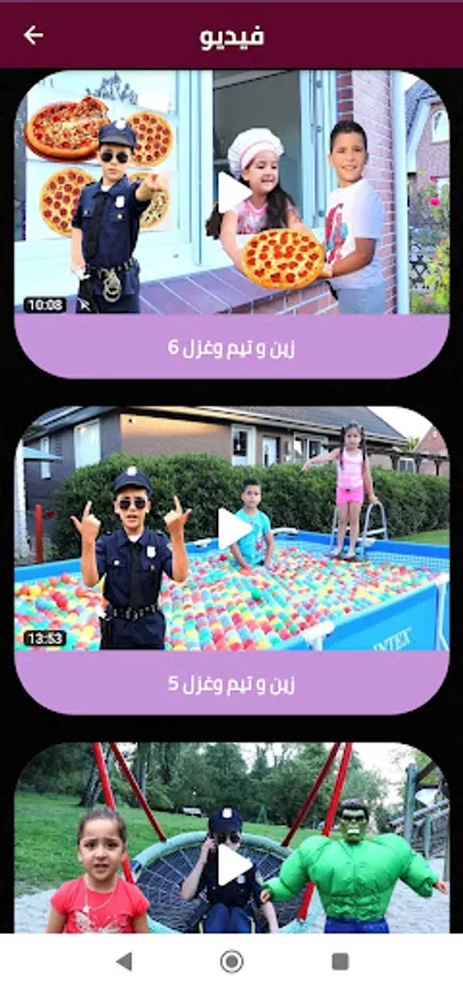 In this application, we present to you the most beautiful clips of Zain, Tim, and Ghazal, one of the most amazing funny, motivating, and entertaining videos, where I play, have fun, ice cream, swimming pools, and play with sand.