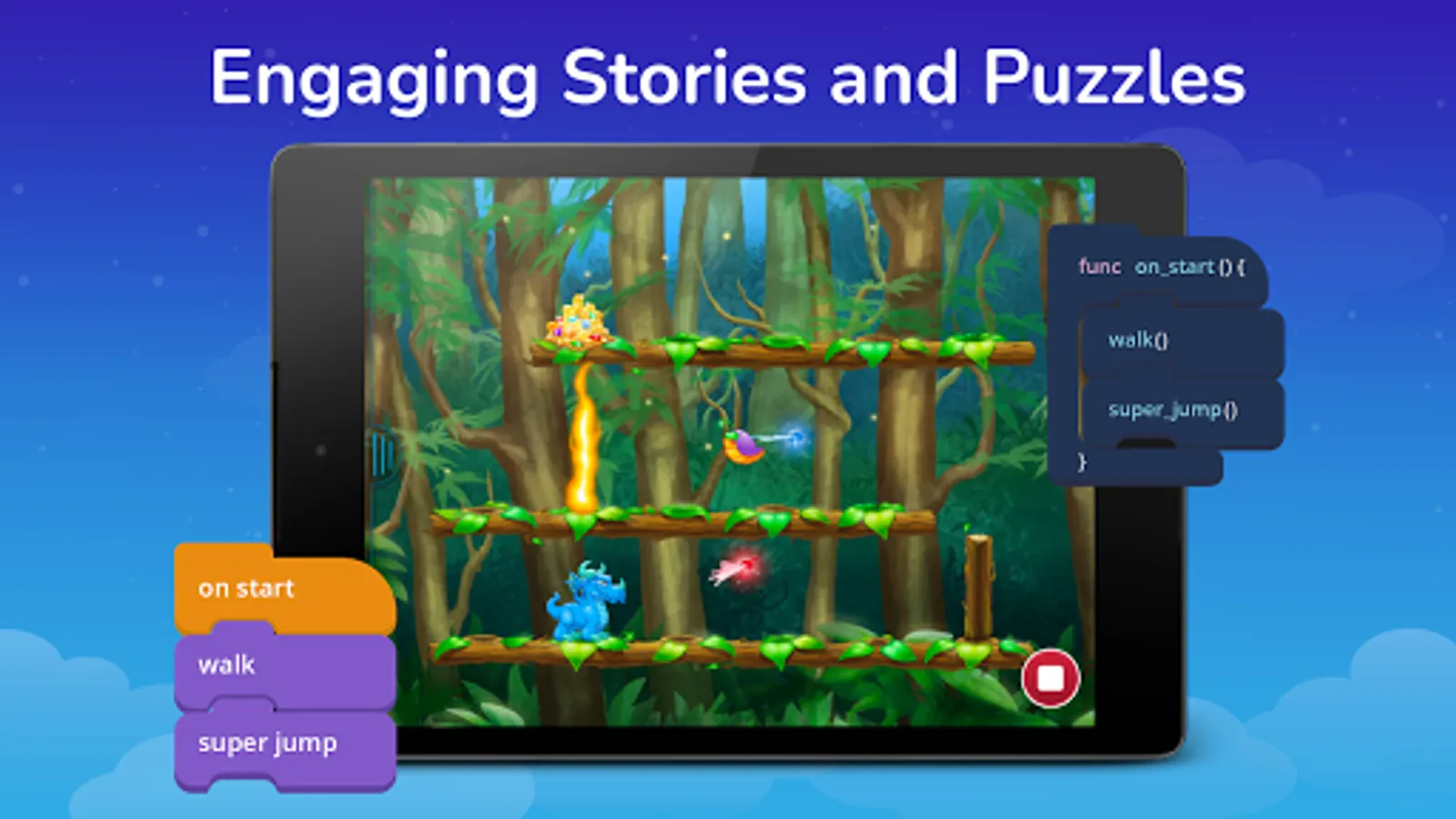 • Learn to code by playing puzzles and games