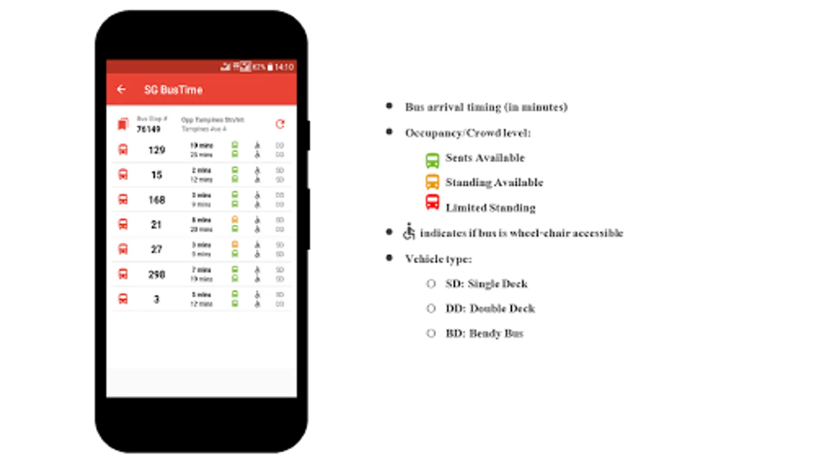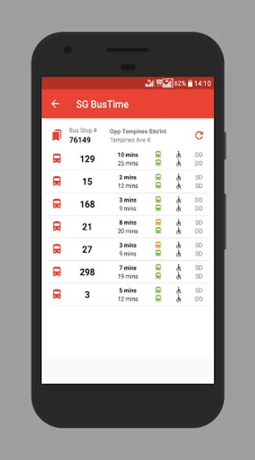 - Vehicle type (SD: Single Deck, DD: Double Deck, BD: Bendy)