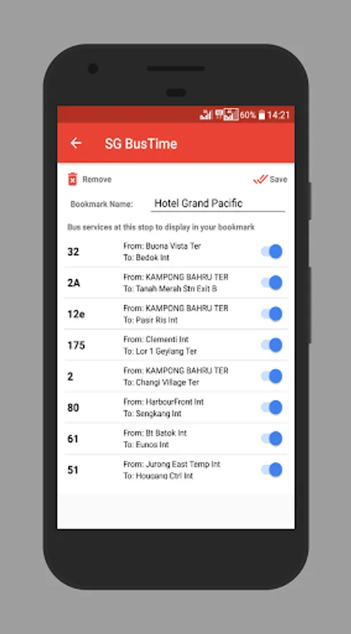 • Bookmark your favorite bus stops for quick access (filter buses to display, drag and drop to reorder)