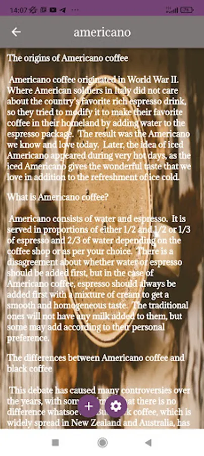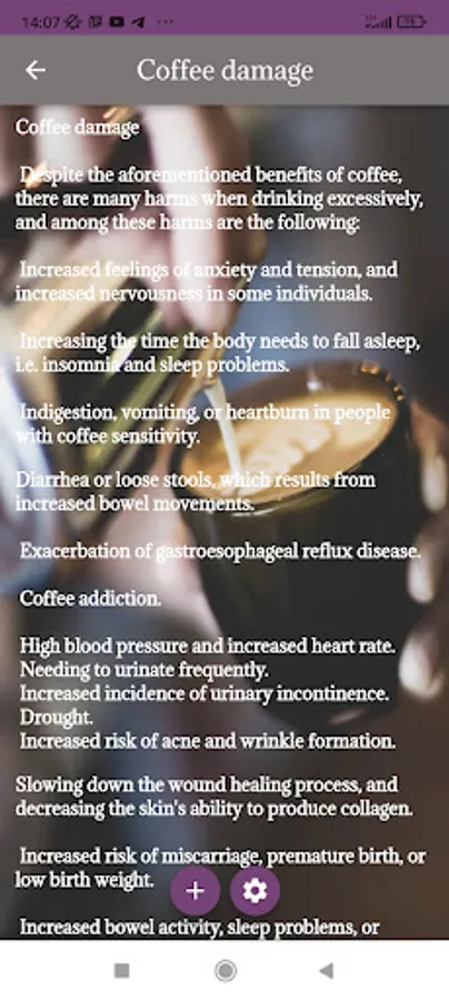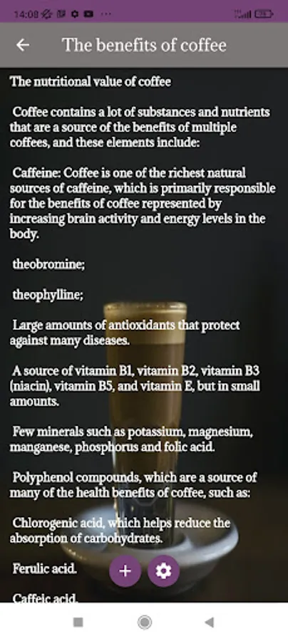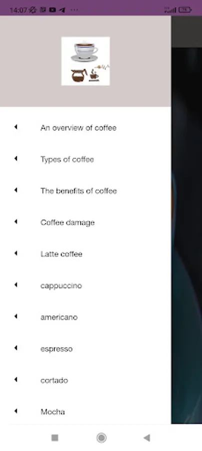 The application of coffee and its benefits and types talks in detail about the types of coffee, how to prepare it, its nutritional value, and the best and best types of coffee in the world, in addition to the benefit of coffee on the human being and his body and its harms to him, and the application provides information and a brief history about coffee of all kinds in addition to Other information: cappuccino coffee, latte, espresso, the effect of coffee on building the human body, the best mills, the best types of drinks, the best coffee beans, distinct tastes, roasted coffee, the best morning breakfast coffee, the amount of caffeine in each coffee, the country of origin and taste Every coffee, how to make coffee, iced coffee, various coffee seeds, Arabica coffee, decaf coffee, black coffee.
