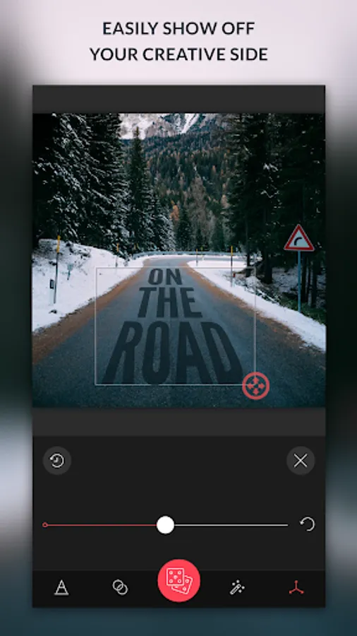 • Eraser tool to gradually delete parts of the text - useful for placing the text designs behind other elements in your photo.