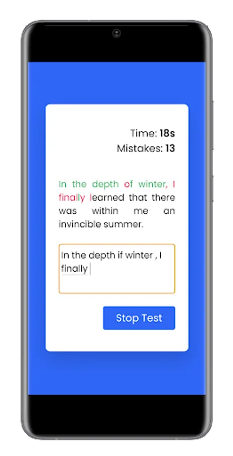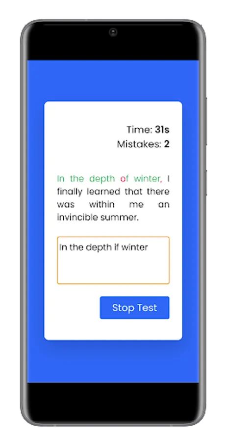 Typing Speed Test app is a useful tool for measuring a user's typing speed and helping them improve their typing skills. The app typically includes a variety of typing lessons and exercises, as well as options for adjusting the difficulty level and tracking progress. Users can also practice typing by playing typing games, which can make learning to type more fun and engaging.