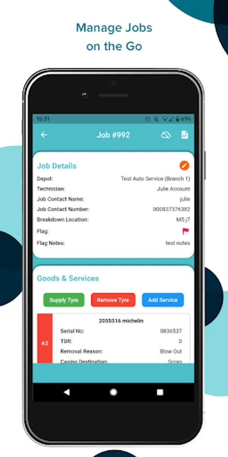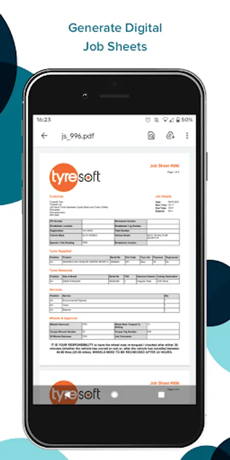 - Produce an electronic job sheet and sync back to your main Tyresoft system.