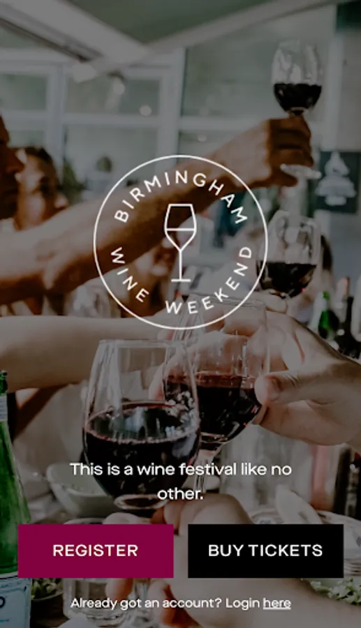 The very first thing you need to do in order to participate in Birmingham Wine Weekend is buy your e-ticket here: https://birminghamwineweekend.co.uk. You’ll find the code to access this app on your e-ticket.