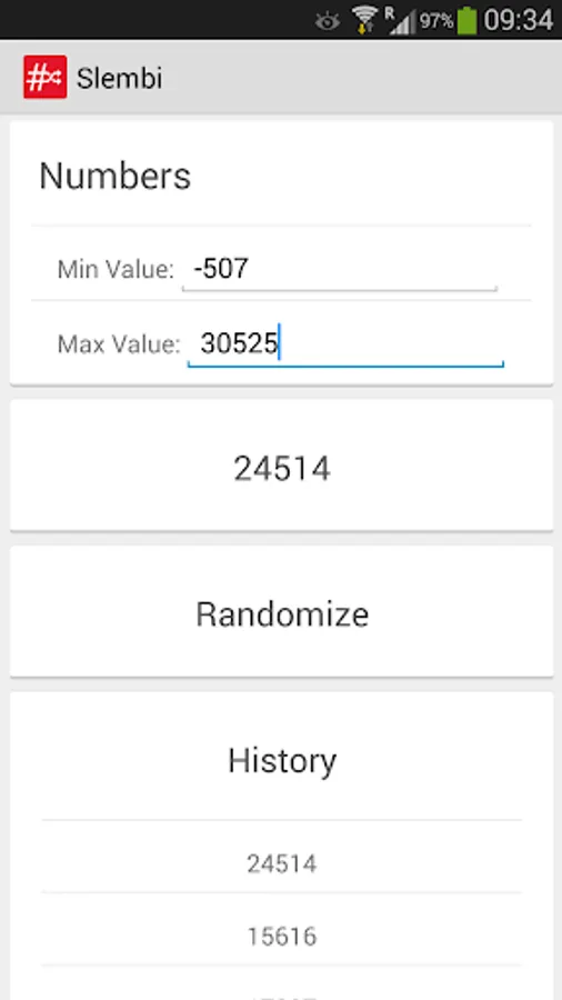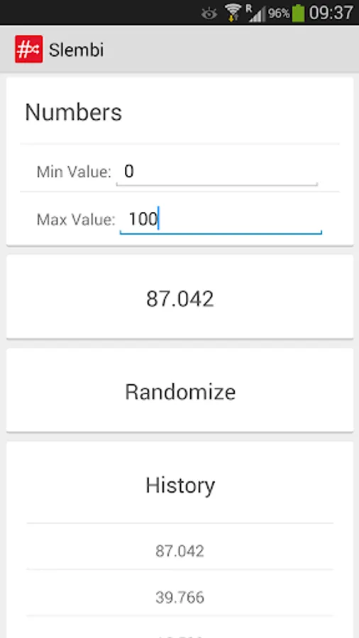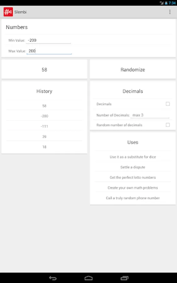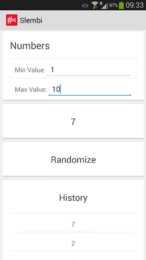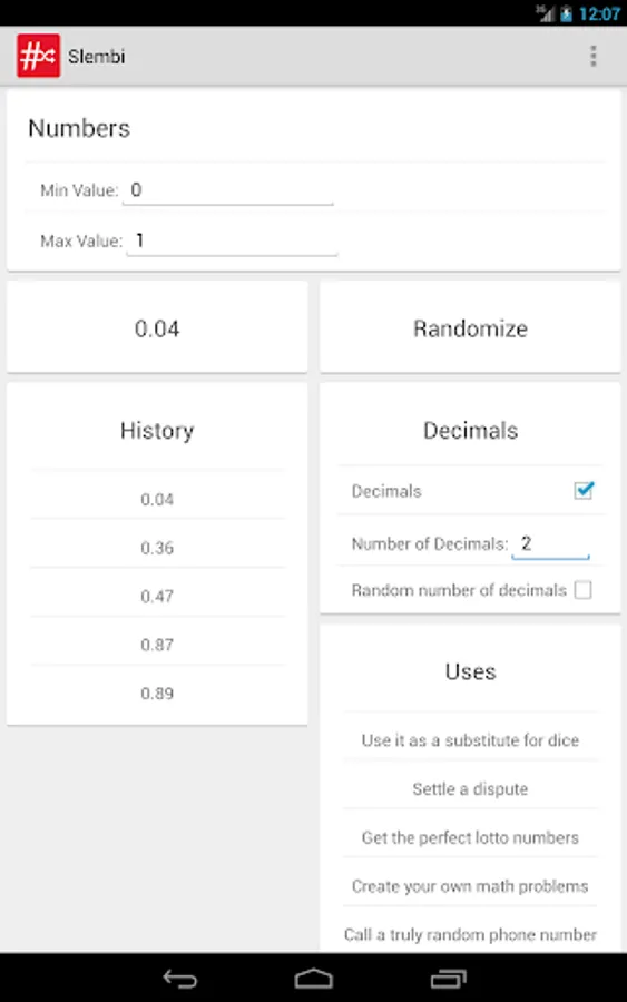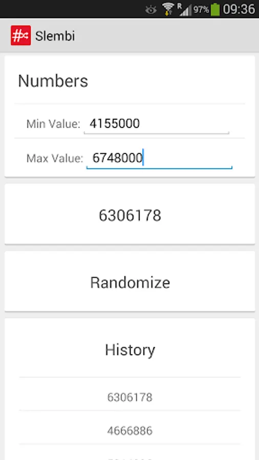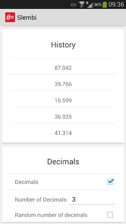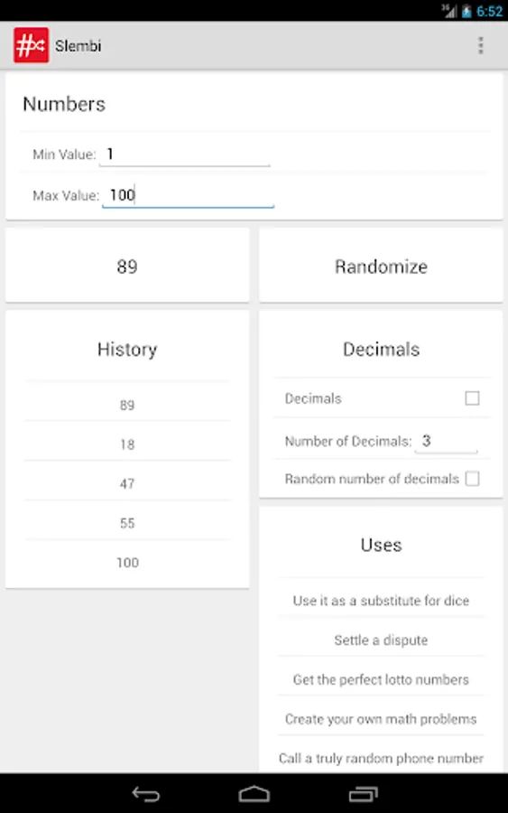 Slembi is a random number generator and thus the perfect app for getting random numbers.