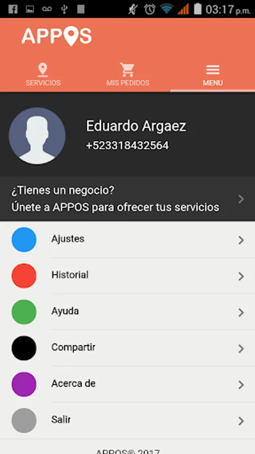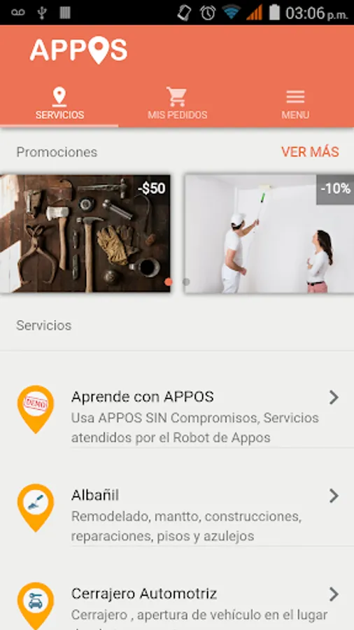 Appos Services. It is a free application that provides customers with a service network at home or anywhere that is required so easy, fast and secure.