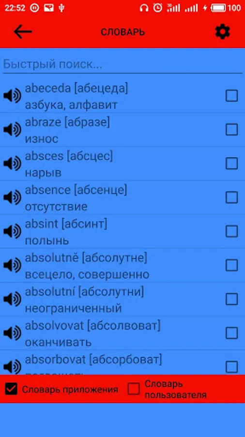 The app contains a vocabulary of 8119 words Czech with the possibility of studying and memorizing.