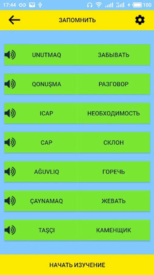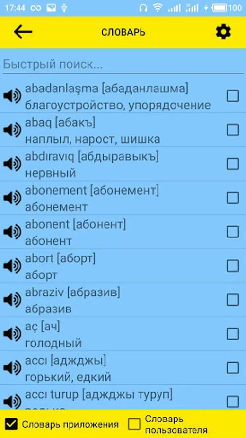 The app contains a dictionary of 2424 Crimean Tatar words with the possibility of studying and memorizing.