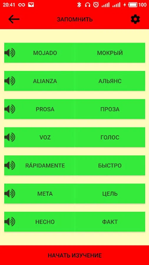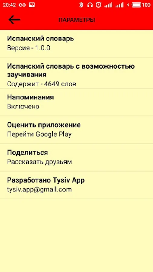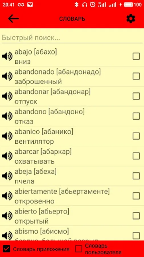 The application contains a dictionary of 4649 Spanish words with the possibility of studying and memorizing them.