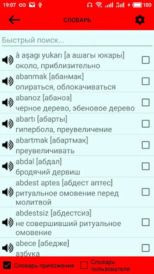 The app contains a dictionary of Turkish words in 2248 with the possibility of studying and memorizing.