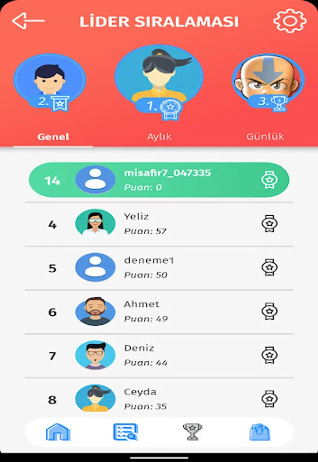 💥 You get points as much as the question you get right in the tests in the categories.