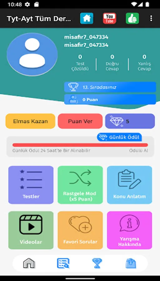 💥 You can earn x5 points in "random mode" with diamonds. At the end of the test, you can make x2 the score you earn by watching rewarded ads.