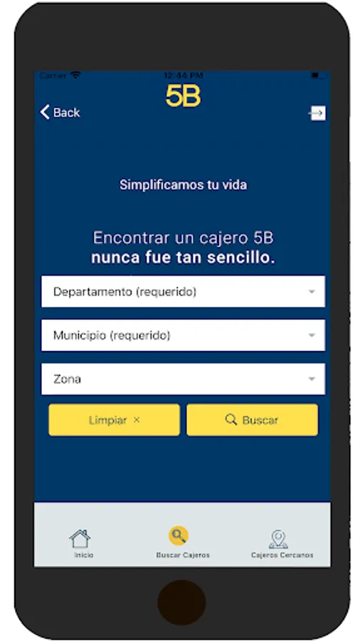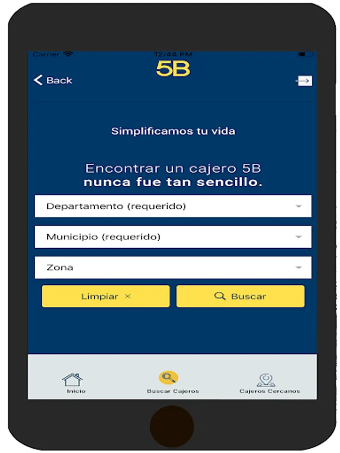 b) Specific Location: ATMs allows us to search by type of location and geographical area (department, municipality and area)