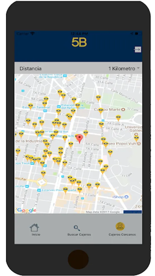 a) Current Location: Displays cashiers originally located 1 km away, allowing you to change the distance up to 6 km.