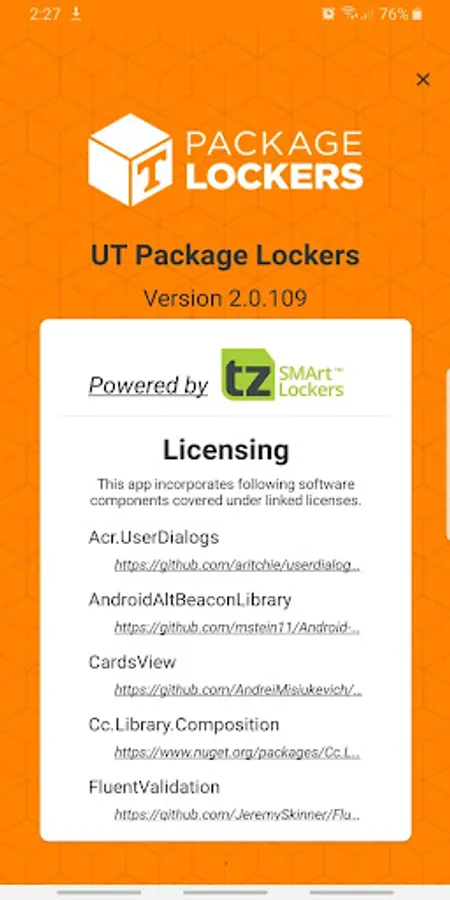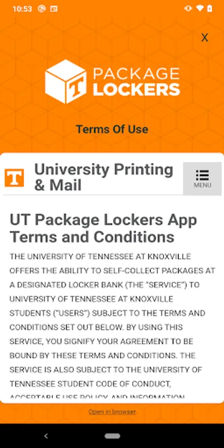 The University of Tennessee, Knoxville, Package Locker Mobile App provides the following: