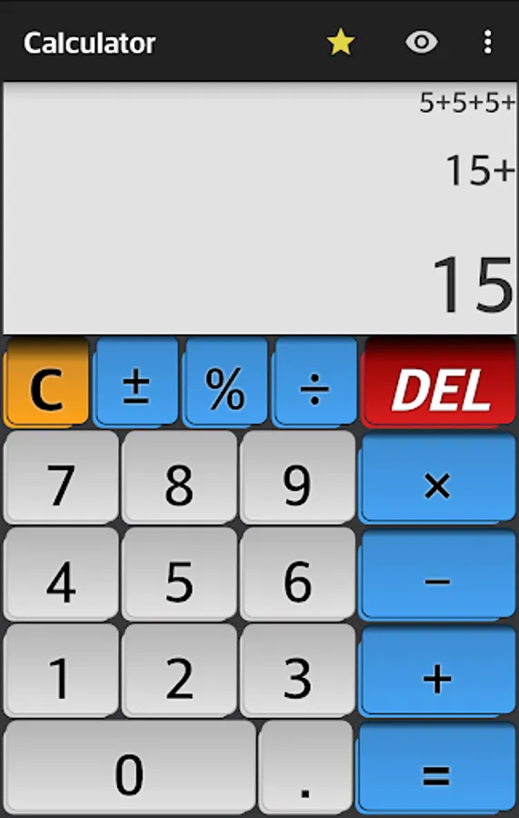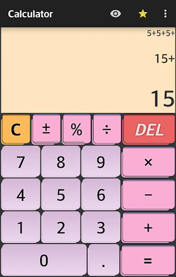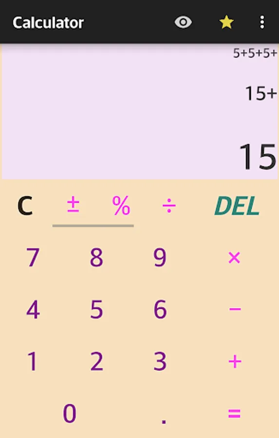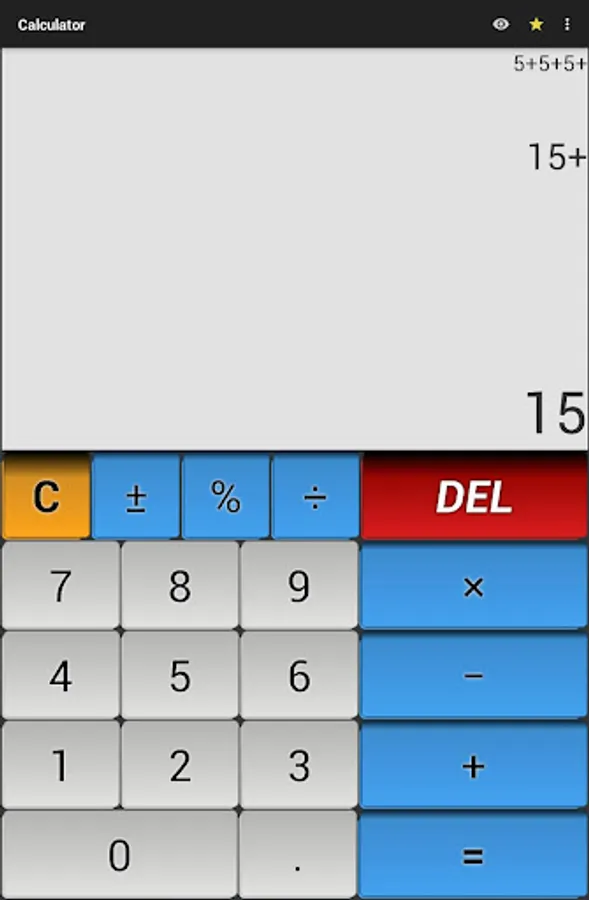 • Shows on runtime the whole calculation on top of the screen, the operation you are doing below, and the result below.