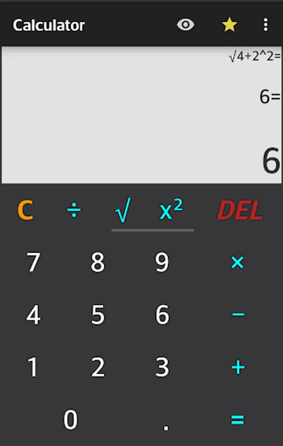 • Other Operators: %, ±, x², √ and many more to be added in next versions. To access them all, simply scroll from right to left or vice versa at these buttons. Or just hold % and drag to the left.
