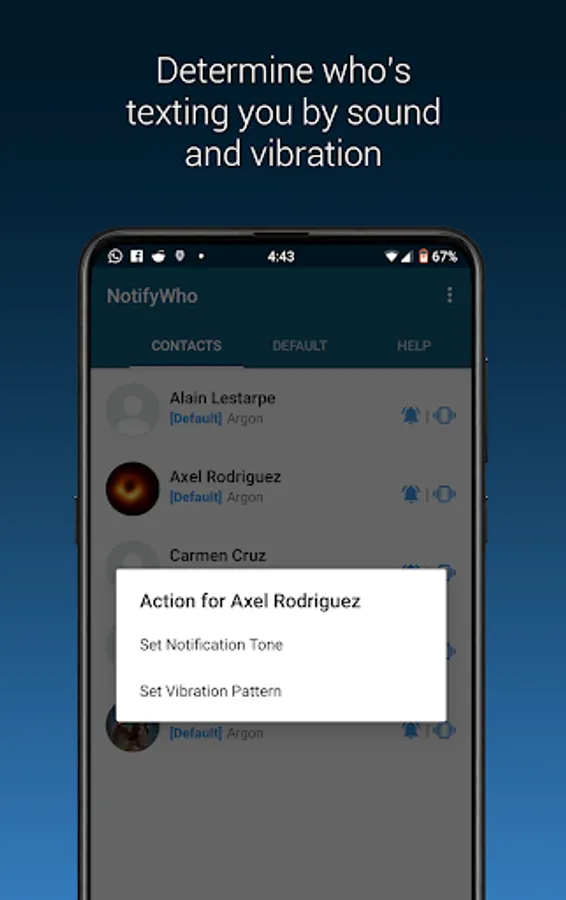 - Then whenever that contact sends you a message over WhatsApp, the specified sound and vibration will play!