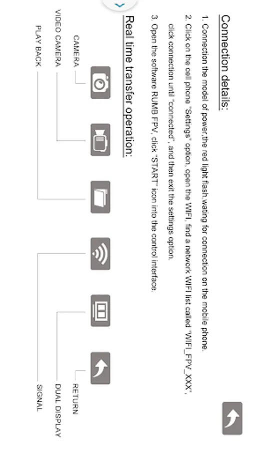 With RUMB products, through the WIFI, real-time video and image transmission to the mobile phone terminal. Main function: