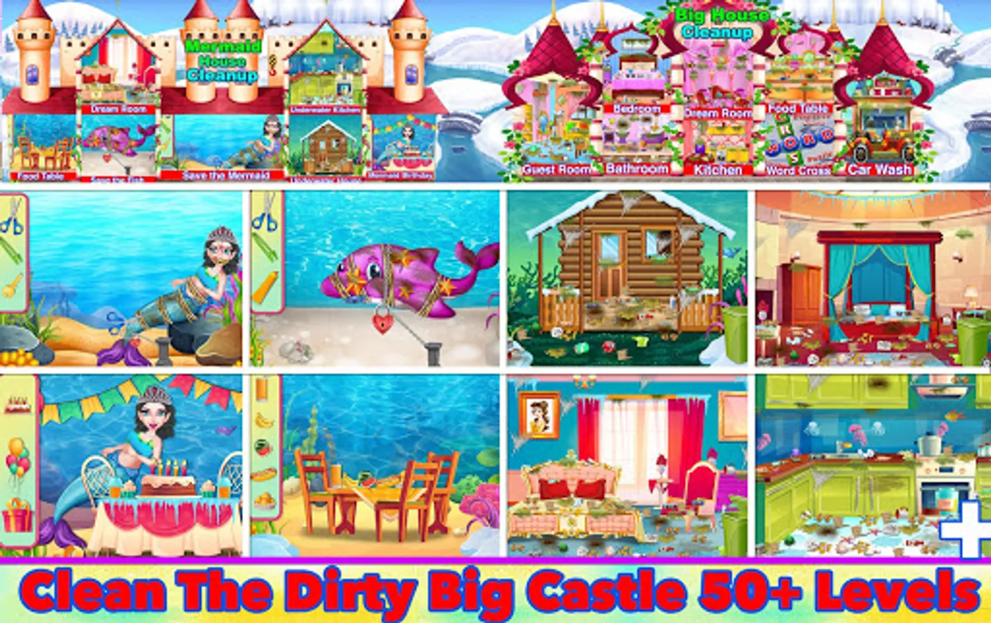 Download Winter Princess Big House Cleaning- Home Cleaning right now and start cleaning a kingdom in amazing “Winter Princess Big House Cleaning- Home Cleaning”, some of the best house cleaning games for free you’ve ever seen! Play this clean up game with many different cleaning activities such as first of all place all messy things at proper place and throw rubbish items in to dustbin. Then cleaning activity will start with removing spider nets, remove dust from walls by using water spray and towel. And at last clean floor by mop. This cleaning game includes rearrange the furniture, jigsaw puzzles, place toys and other things back on their place, restore walls etc.
