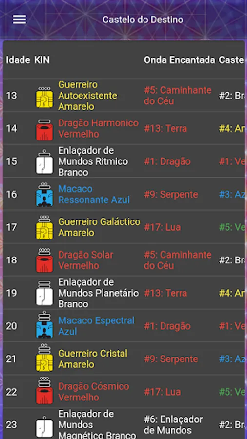 - Information about the kin like the Oracle, Wavespell, Castle, Harmonics, Chrono Psi...