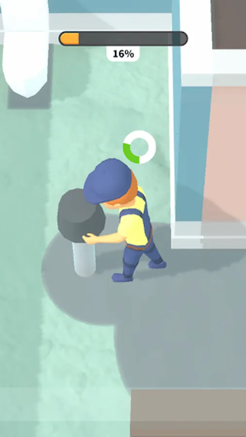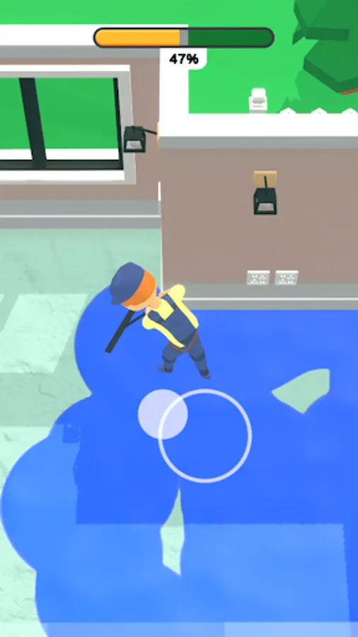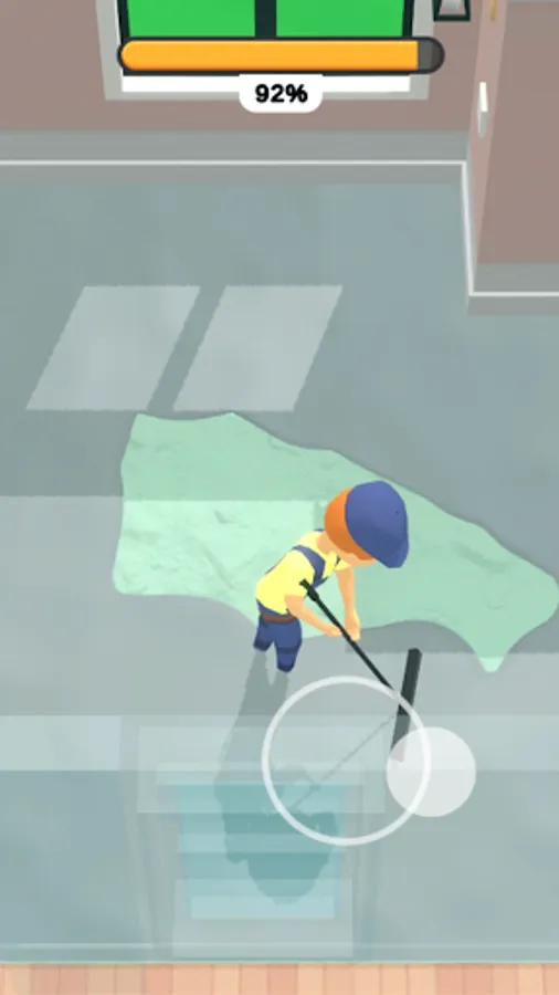 Use the joystick to operate. Pour cement on the floor of the blank room. Then smooth them out little by little. Enjoy the whole process.