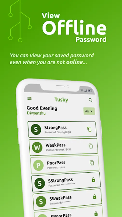 If you are stuck in no internet zone. Do not worry Tusky saves your passwords locally on your device without the interference of any third party application. You can view your passwords in offline mode, even if you have no internet connection.