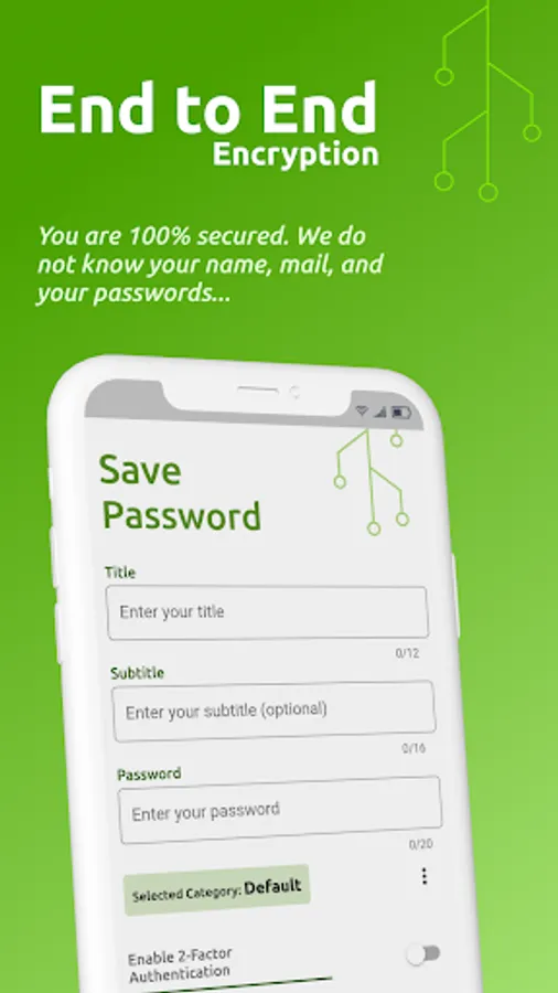 Tusky provides you with the functionality to save your passwords as well. It includes 3 text fields where you can enter the title, subtitle and password. You can also enable 2 factor authentication in Tusky while saving your password. You can categories your password into different provided categories on the screen to access the passwords easily. Save your passwords with Tusky and be tension free.