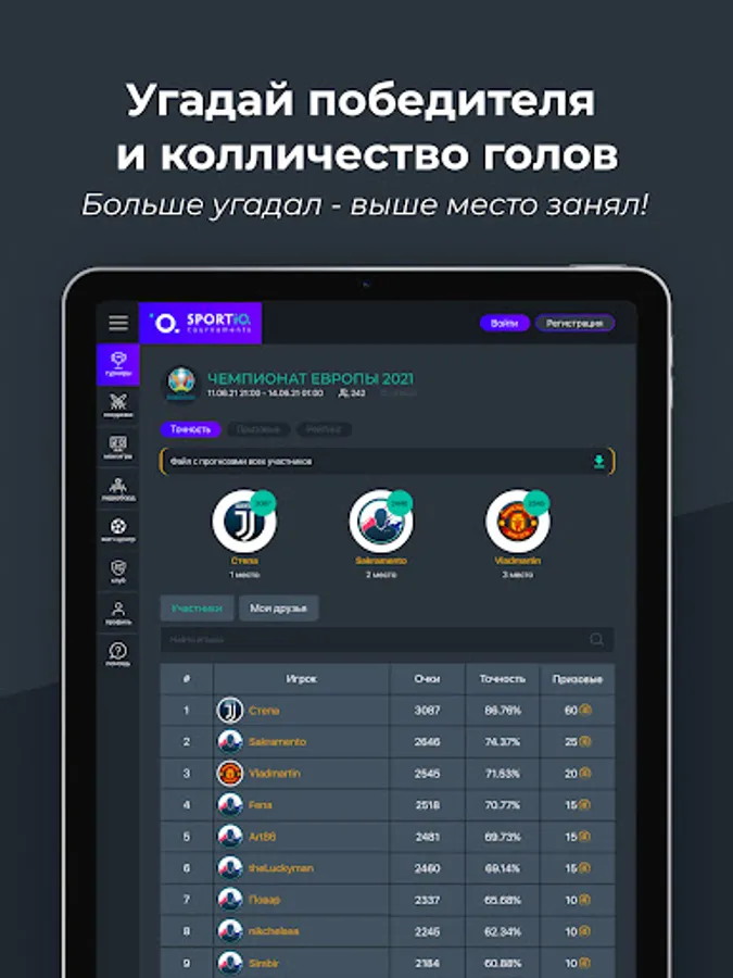 SPORTIQ - Турниры среди любителей футбола по прогнозированию результатов футбольных матчей!