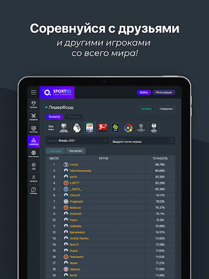 Соревнуйся с друзьями, прокачивай карточку игрока, попадай в лидерборды, зарабатывай рейтинг!