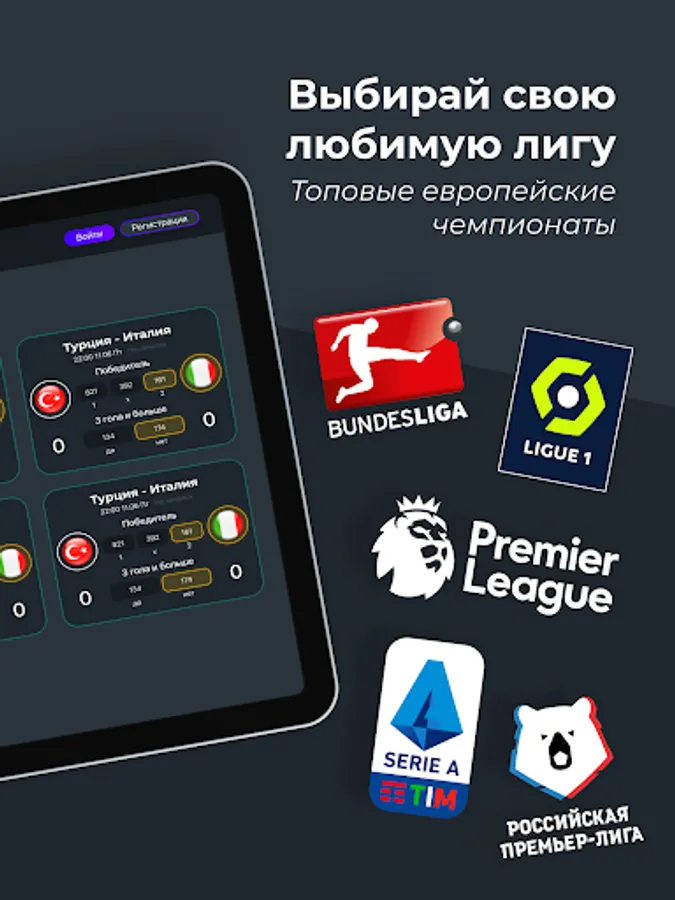 Выбирай любую лигу из топовых европейских чемпионатов!
