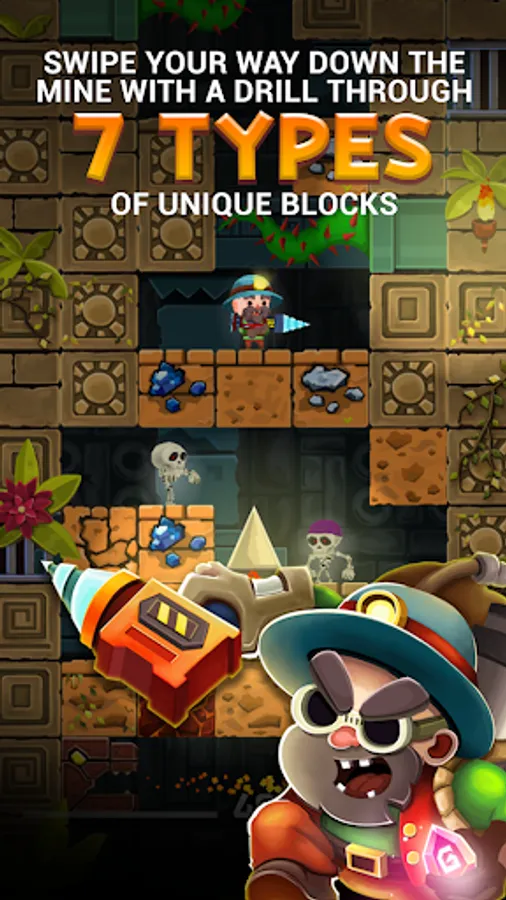 Swipe your way down the mine with a drill through 7 types of unique blocks