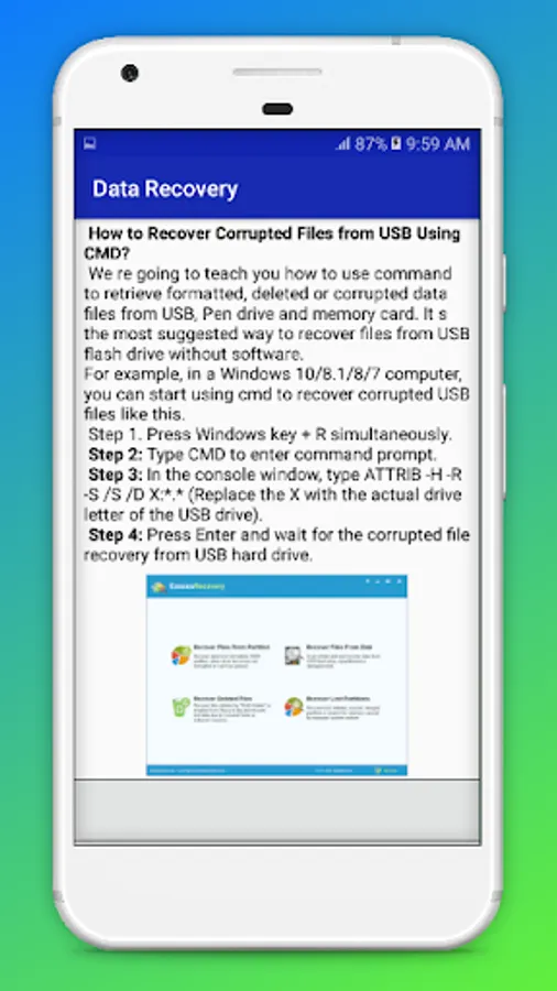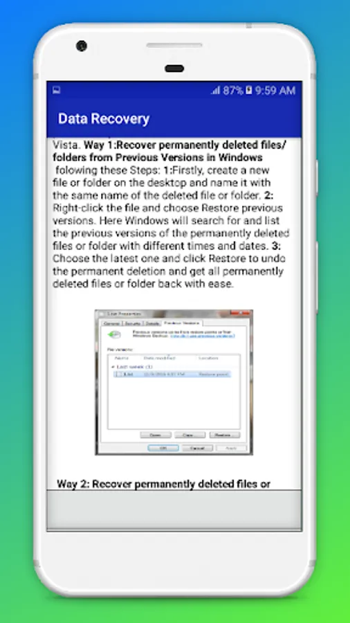 Note: This is content-only app that gives you information about how to recover deleted data.