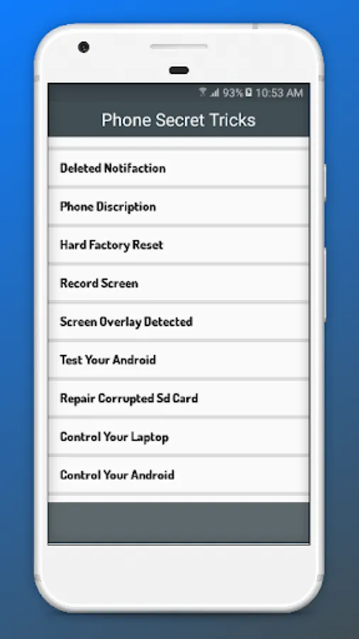 Discover ways to get most out of your Android device easily by everyone. Get the best hidden Mobile tricks with this app and also help you to increase knowledge. You will also able to learn a lot of things about your android phone that you never know before. All the tricks are explained step by step in phone tricks and tips app. Master your Android phone within minutes using this app and Any Mobile device support several secret codes. Brief description is in app.