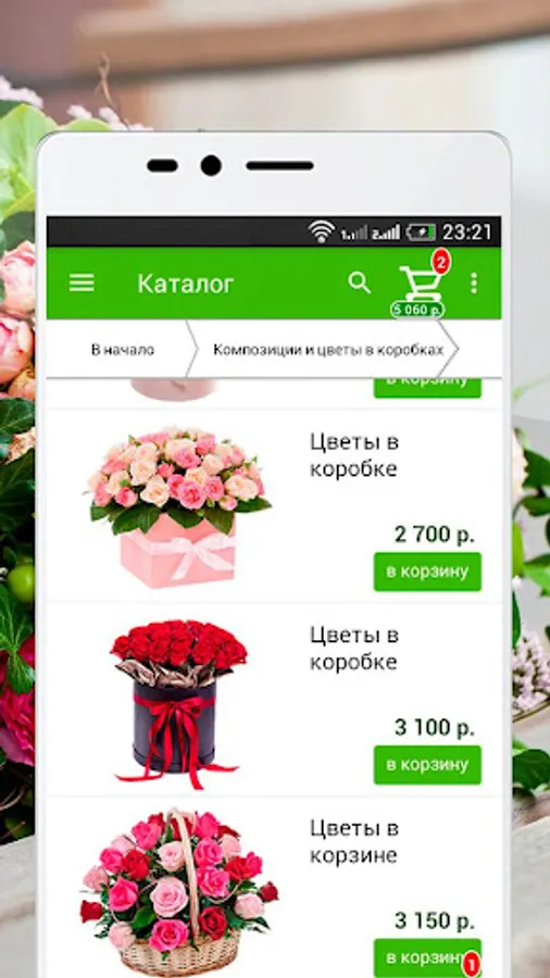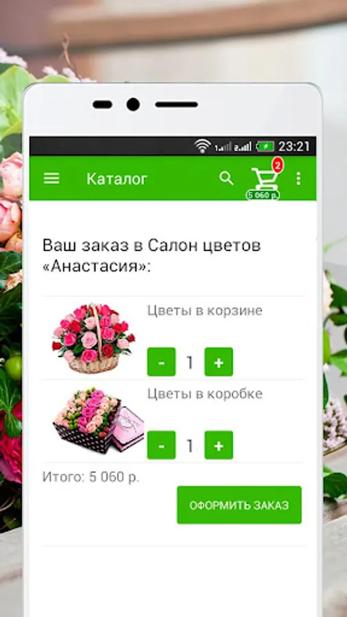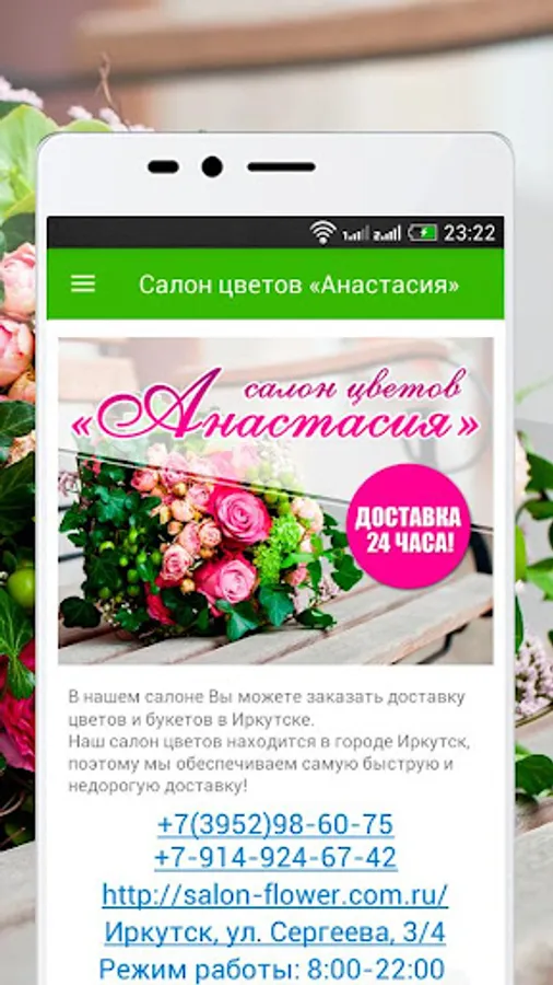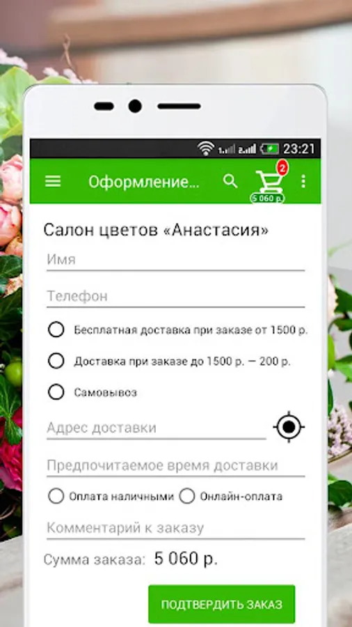 To give a smile to a friend, choose a bouquet in "Anastasia" application, specify the time and address of delivery and confirm your order.