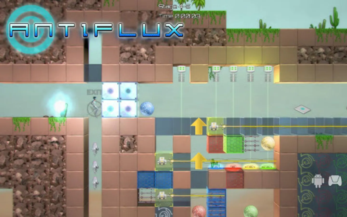 Antiflux an oldschool metroidvania-style puzzle platformer. Puzzles are complex but easy to understand. The platforming is simple but fun, controls comfortably with a touch screen or controller. Pick up upgrades along your journey recover lost research on an abandoned planet, and discover its dark secrets!